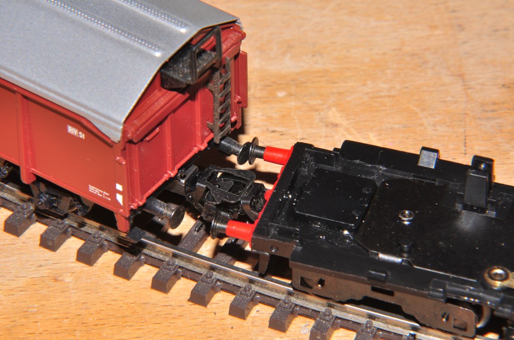 Auch die vordere Kupplung lässt sich optimieren. Der Kupplungshaken suggeriert nicht gerade Kuppelsicherheit und auch der Abstand gefällt nicht wirklich gut. |